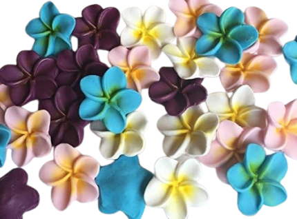 12 Beautiful Edible Sugar Fondant Plumeria Flowers (frangpini); Yellow Highlighted Center ; 3cm