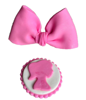 Large Edible Sugar Fondant Barbie Doll Princess Bow & Princess Head Figure plaque
